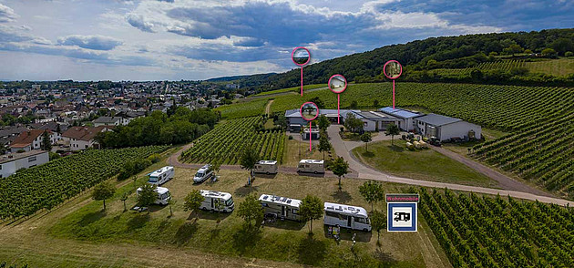 Besuchen Sie den Weinkeller, die Vinothek oder blicken Sie aus der Luft auf das Weingut.